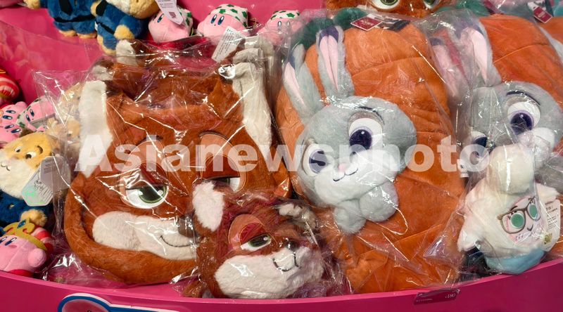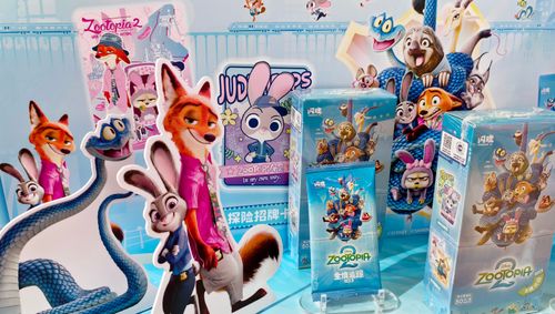图片说明:2026年1月5日,上海电影院,迪士尼动画电影《疯狂动物城2》的正版周边毛绒玩偶“狐狸尼克”“兔子朱迪”吸引影迷关注。