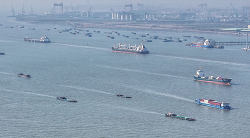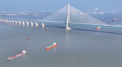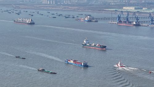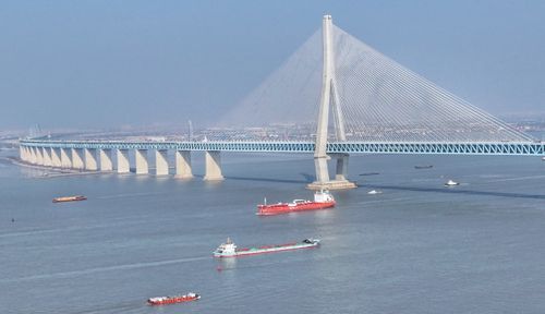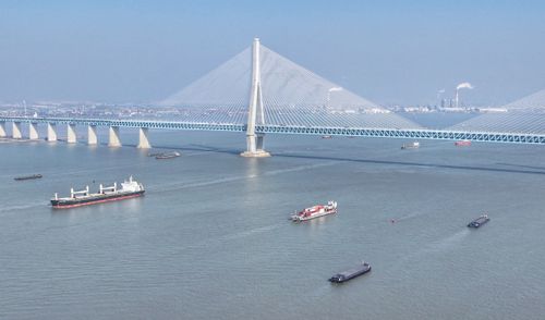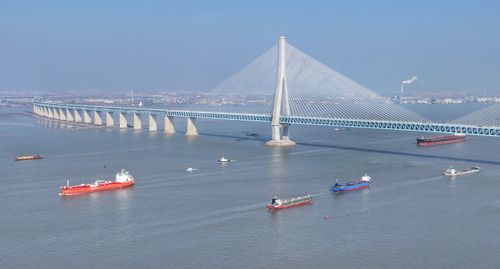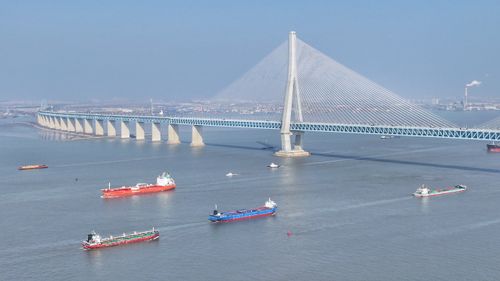 图片说明:2026年1月7日,新年伊始,长江“黄金水道”江苏省张家港段水域,运输生产生活物资的船舶有序在江面上往来穿梭。