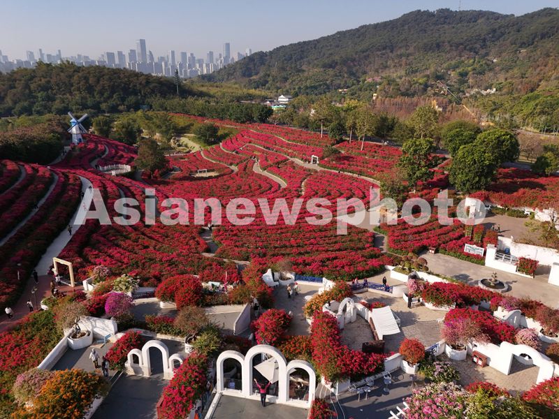 2026年1月8日,广西南宁市,青秀山姹紫嫣红的三角梅竞相盛放,五彩斑斓的花海交相辉映,吸引了全国各地的游客纷至沓来。
