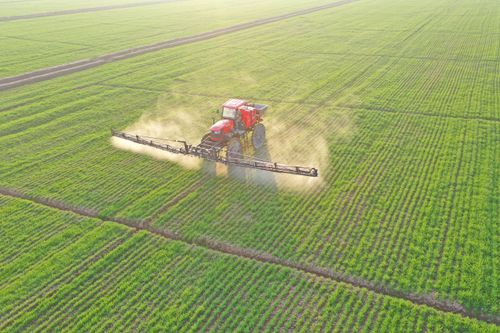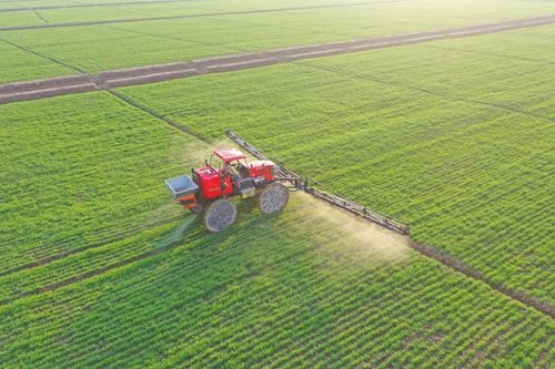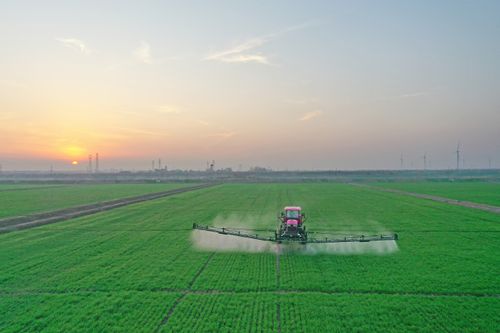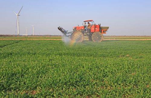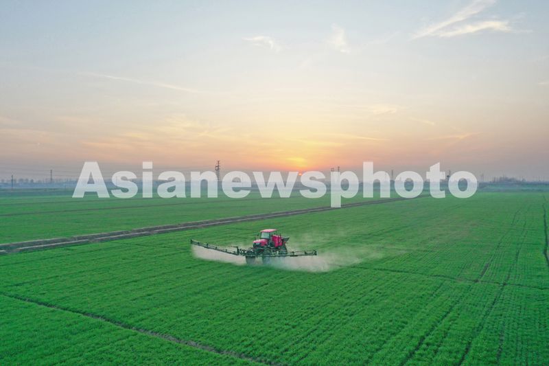 2026年1月7日,安徽省安庆市宿松县省属农垦华阳河农场,农机手驾驶植保机械开展小麦喷肥施药作业。