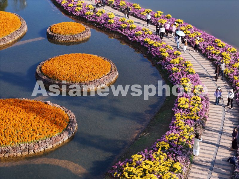 广西壮族自治区南宁市青秀山风景区丘石花园内的菊花、美丽异木棉等花海迎来盛花期。满目的缤纷花海令人沉醉,吸引不少市民和游人穿梭于花海间赏花游玩,或在这片迷人花海中拍照留念,感受绿城南宁的多彩冬日,十分热闹。