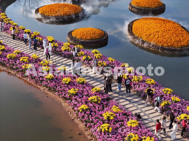 广西壮族自治区南宁市青秀山风景区丘石花园内的菊花、美丽异木棉等花海迎来盛花期。满目的缤纷花海令人沉醉,吸引不少市民和游人穿梭于花海间赏花游玩,或在这片迷人花海中拍照留念,感受绿城南宁的多彩冬日,十分热闹。
