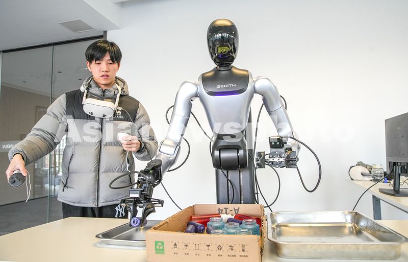 2026年1月9日,浙江湖州,长三角(德清)具身智能数据采集训练场,人形机器人正在仿真环境中训练与学习。