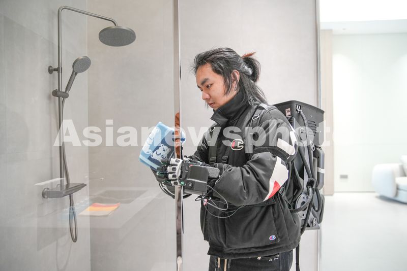 2026年1月9日,浙江湖州,长三角(德清)具身智能数据采集训练场,机器人训练师在仿真环境中进行数据采集。