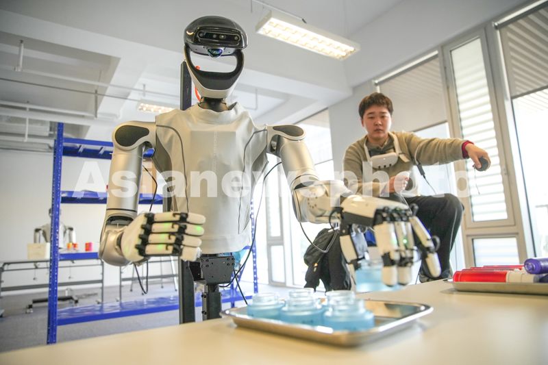 2026年1月9日,浙江湖州,长三角(德清)具身智能数据采集训练场,人形机器人正在仿真环境中训练与学习。