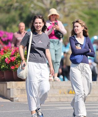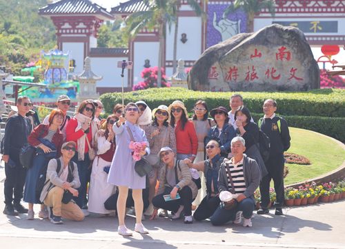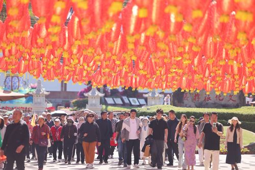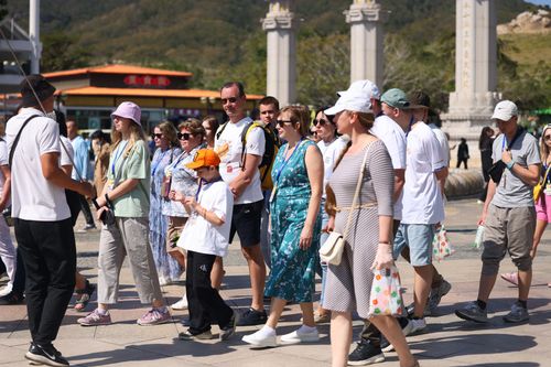 2026年1月9日,海南三亚,外国游客在三亚南山文化旅游区游览。