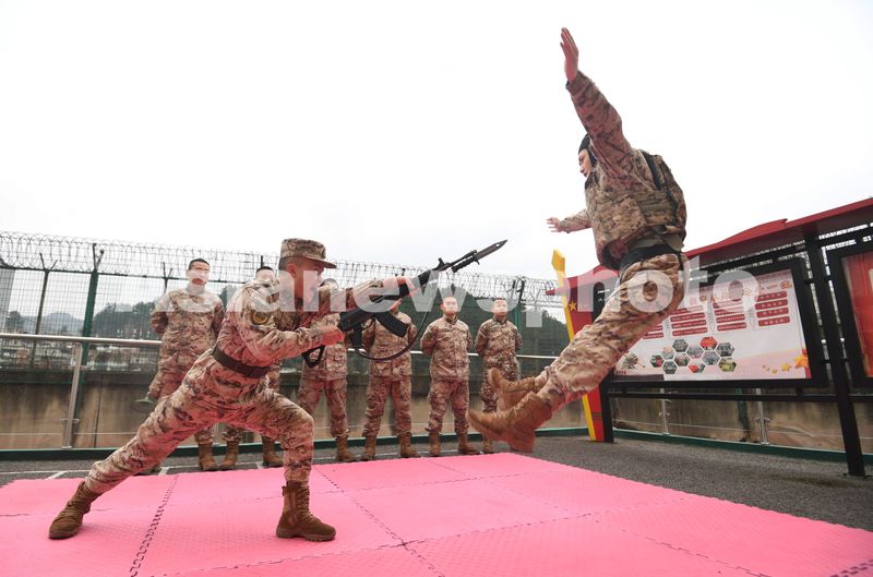1月30日,武警贵阳支队某中队的官兵正在开展哨兵反袭击训练。