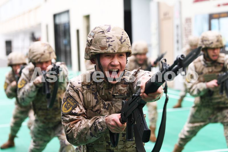 2026年1月30日,武警贵阳支队某中队的官兵正在开展刺杀训练。