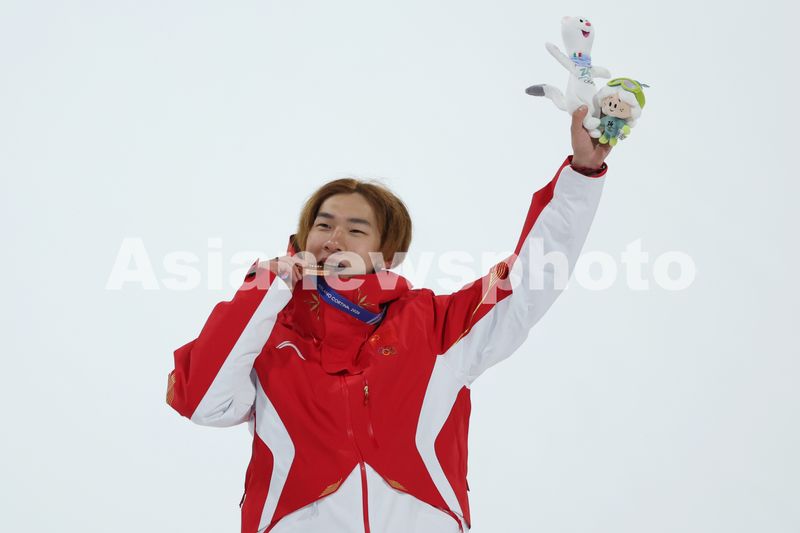 2月7日,季军中国选手苏翊鸣在颁奖仪式上。