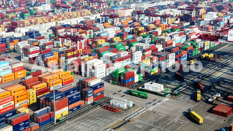 2026年2月13日,山东港口青岛港,堆场堆放的外贸集装箱。