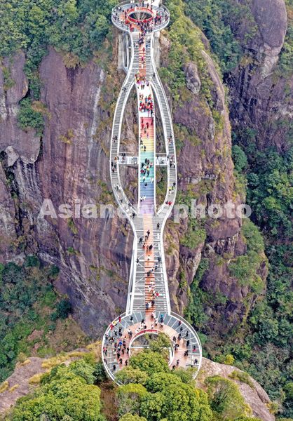 图片说明:2026年3月8日,游客在浙江省台州市仙居县神仙居景区如意桥上游玩。