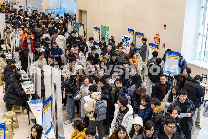 图片说明:2026年3月11日,新疆大学博达校区大学生活动中心专场招聘会现场人头攒动。