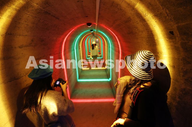 2026年3月17日,市民游客在“洞见厦门”防空洞内探秘游览。