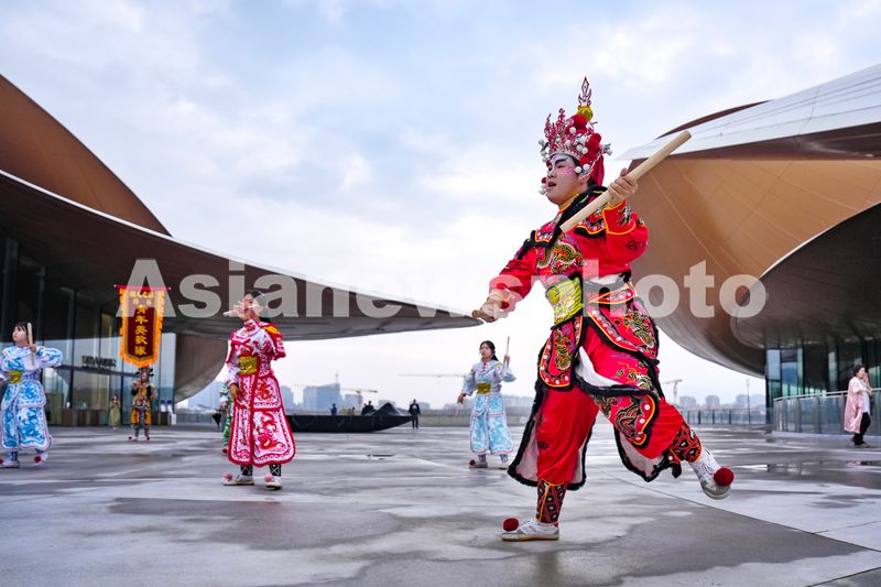 2026年3月30日,来自广东省潮汕地区的青年英歌队在浙江省湖州市安吉“两山”未来科技城表演潮汕英歌舞。