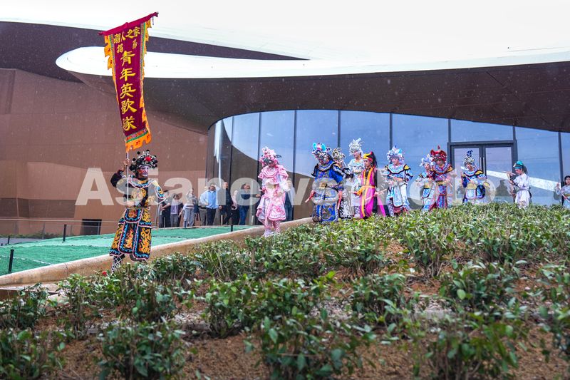 2026年3月30日,一场精彩的潮汕英歌舞表演在浙江省湖州市安吉“两山”未来科技城文化艺术中心“竹叶茶田”间举行,吸引市民、游客前来观看。