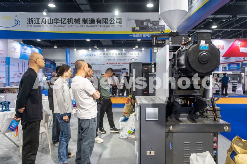 2026年4月10日,浙江省金华市,在永康市国际会展中心里,客商在考察全新的机械装备展示。