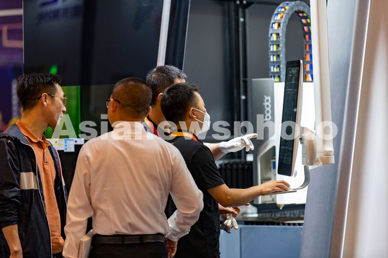 2026年4月10日,浙江省金华市,在永康市国际会展中心里,客商在考察全新的机械装备展示。