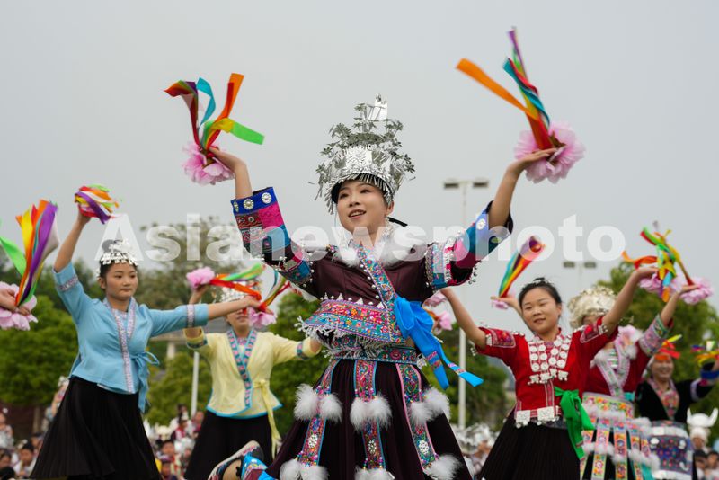 2026年4月13日,广西柳州市融水苗族自治县融水镇水东小学举行“民俗润童心 喜迎三月三”活动,各族师生身着民族服饰展演民族节目、体验民俗活动,喜迎“广西三月三”。