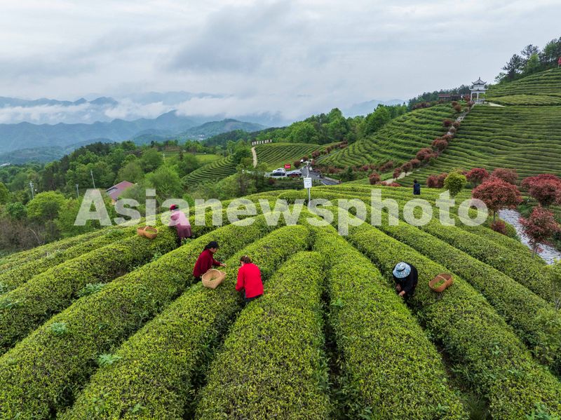 谷雨临近,湖北省襄阳市保康县各地茶园进入鲜叶采摘“黄金季”,茶农们抢抓农时,赶采“谷雨茶”,茶园里一派繁忙景象。