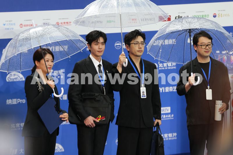 4月16日,第十五届北京国际电影节开幕入场仪式现场,图为《年会不能停!》剧组。