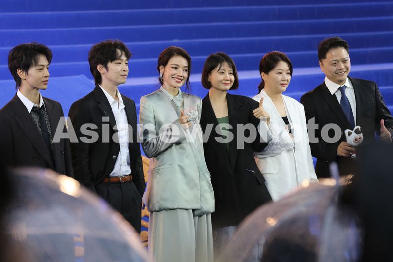 4月16日,第十五届北京国际电影节开幕入场仪式现场,图为本届北影节项目创投单元评委会主席舒淇(左三)、评委尹昉(左一)、杨子(右一)、应萝佳(右二)、邵艺辉(右三)、董子健。
