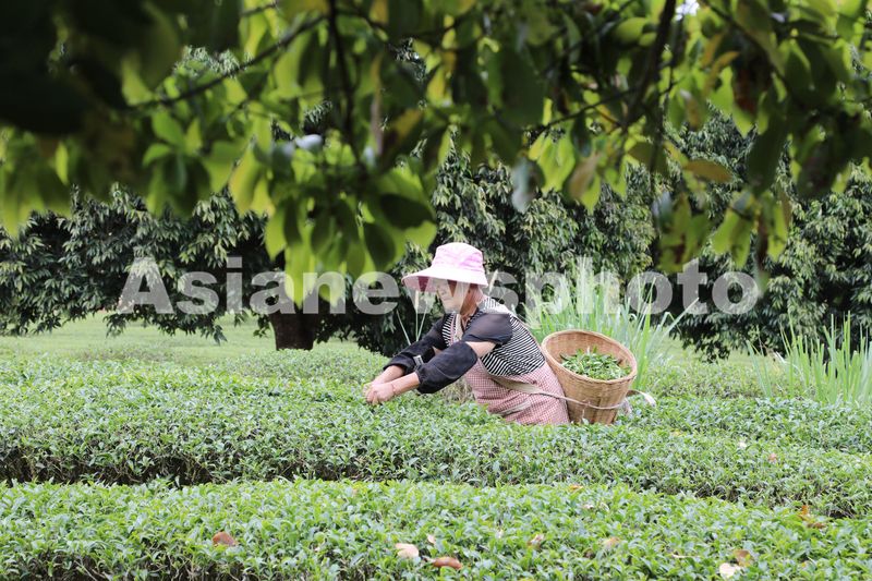 4月19日,茶农在宁洱哈尼族彝族自治县宁洱镇般海村茶园采茶。