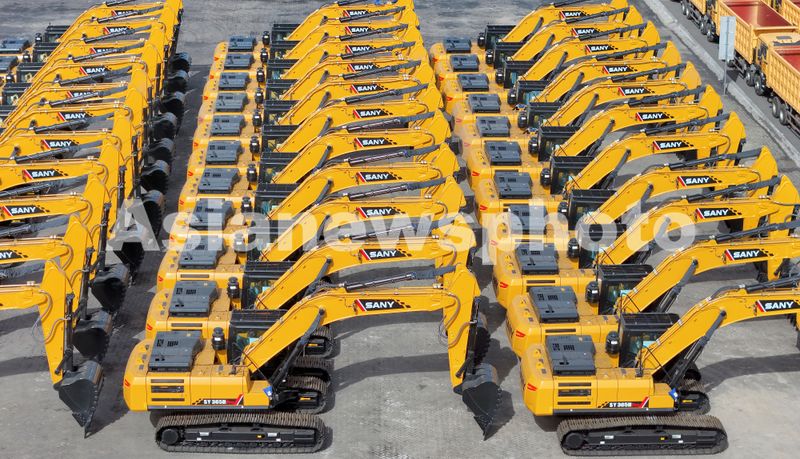 2026年4月20日,大批三一挖掘机在山东港口烟台港等待装船出口。