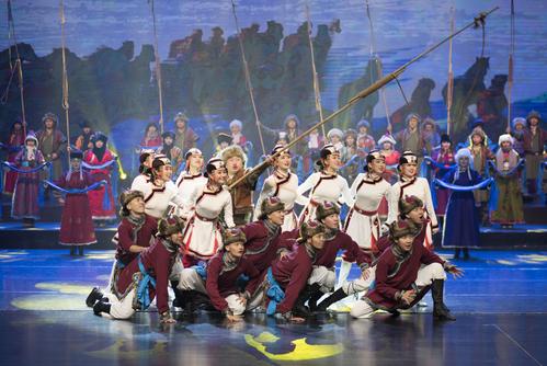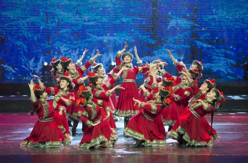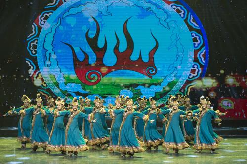 Dancers perform in a gala performance held in Hulun Buir, Inner Mongolia autonomous region, December 22, 2019. A gala performance is held at the Hulun Buir Theatre on Sunday to celebrate the upcoming of the 14th Chinese National Winter Games which is scheduled to take place in February next year in Inner Mongolia.