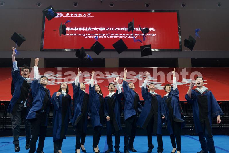 Huazhong University of Science and Technology holds the commencement ceremony in Wuhan, Hubei province, June 21, 2020. Hundreds of graduates were chosen as representatives to have their tassels turned at the campus, while another 10,000 saw the commencement ceremony online.