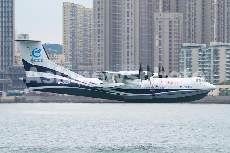 An AG600 seaplane, China's second amphibious aircraft, prepares to take off during a test flight in Qingdao, Shandong province, on July 26, 2020.