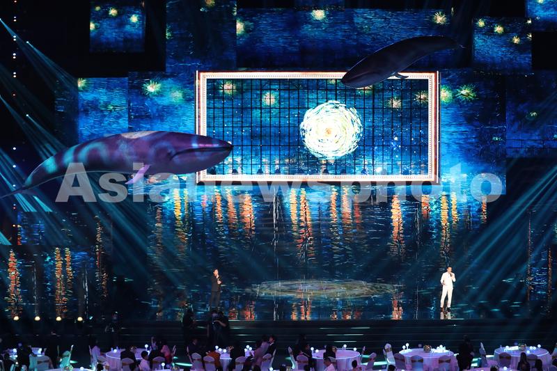 Singers and dancers perform at the Mid-Autumn Festival Concert in the Greater Bay Area in Shenzhen, Guangdong province, on September 21, 2021. More than 100 renowned filmmakers and musicians from the Chinese mainland, Hong Kong, Macao and Taiwan gathered at the concert to celebrate the festival.