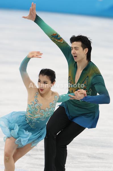 Wang Shiyue (L) and Liu Xinyu of China perform their free dance of Beijing 2022 Winter Olympics at Capital Indoor Stadium, February 14, 2022.