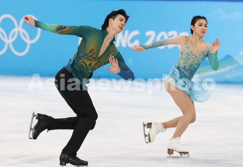 Wang Shiyue (R) and Liu Xinyu of China perform their free dance of Beijing 2022 Winter Olympics at Capital Indoor Stadium, February 14, 2022.