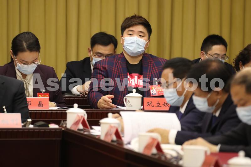 Gong Lijiao, a delegate to the 20th National Congress of the Communist Party of China, studies the report of the 19th CPC Central Committee to the 20th CPC National Congress, October 16, 2022.