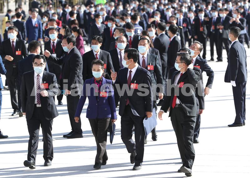 Caption:Delegates to the 20th National Congress of the Communist Party of China walk to the Great Hall of the People in Beijing on October 16, 2022.
