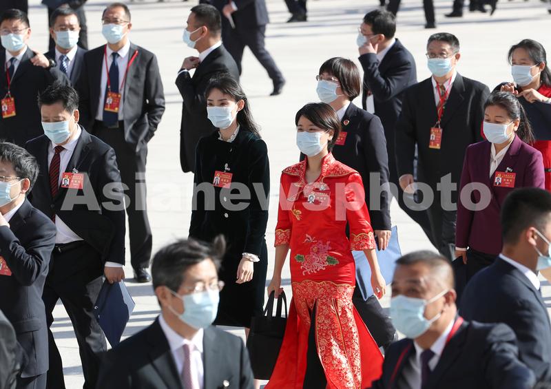 Caption:Delegates to the 20th National Congress of the Communist Party of China walk to the Great Hall of the People in Beijing on October 16, 2022.