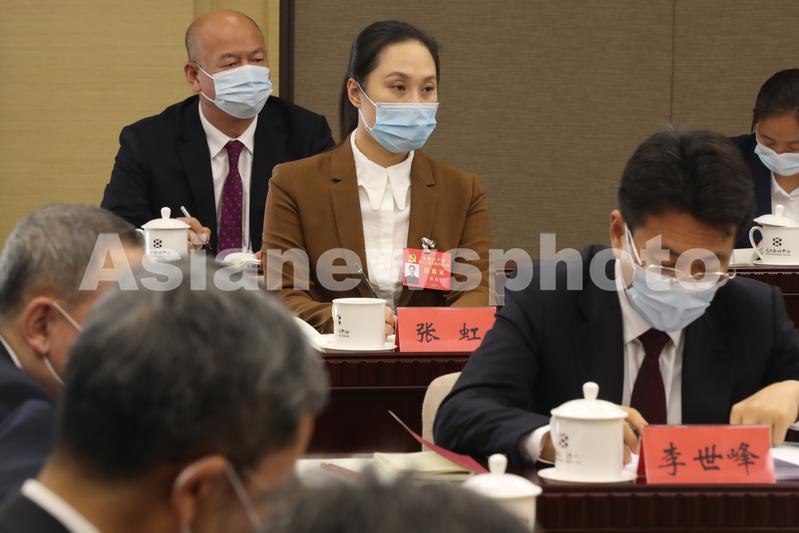 Zhang Hong (center), a delegate to the 20th National Congress of the Communist Party of China, studies the report of the 19th CPC Central Committee to the 20th CPC National Congress, October 16, 2022.