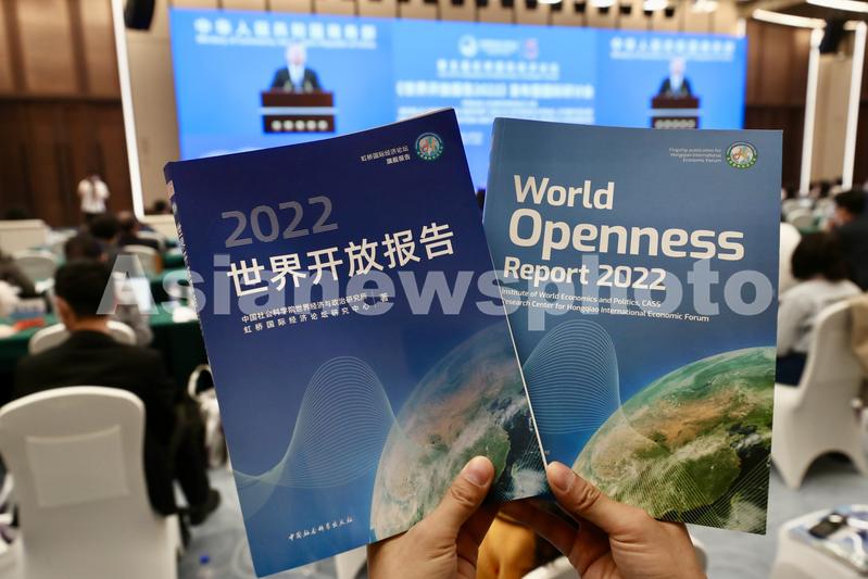Participants attend the press conference on World Openness Report 2022 & International Symposium on Current Situation and Prospects of World Openness during the fifth Hongqiao International Economic Forum in Shanghai, November 5, 2022.