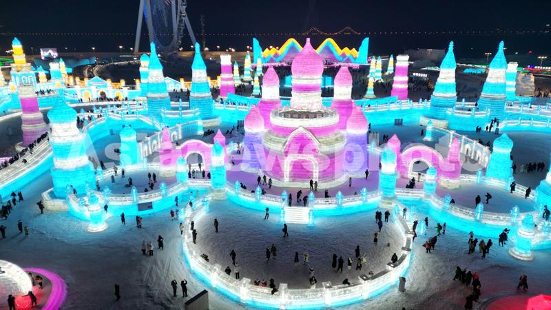 Tourists visit the Harbin Ice-Snow World in Harbin, Heilongjiang province, on December 18, 2023. The renowned Harbin Ice-Snow World opened to the public on Monday. Over 1,000 appealing ice and snow landscapes and sculptures have been built in the park for people to enjoy. The park aims to integrate arts, culture, performance, architecture and sports to showcase the charm of ice and snow.