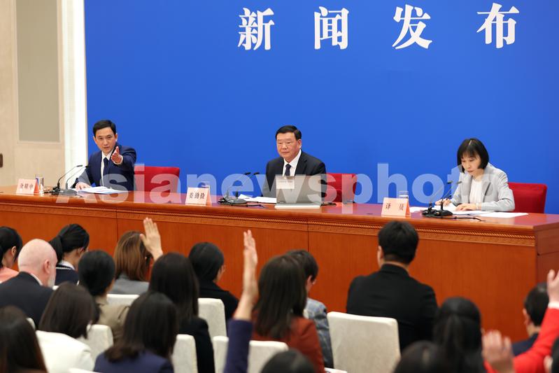 Caption:Journalists raise hands to ask questions at a press conference of the second session of the 14th National People's Congress at the Great Hall of the People in Beijing, on March 4, 2024. The NPC, China's national legislature, held a press conference on Monday, one day ahead of the opening of its annual session.