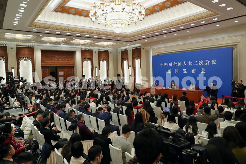 Caption:Lou Qinjian, spokesperson for the second session of the 14th National People's Congress, attends a press conference at the Great Hall of the People in Beijing, on March 4, 2024. The NPC, China's national legislature, held a press conference on Monday, one day ahead of the opening of its annual session.