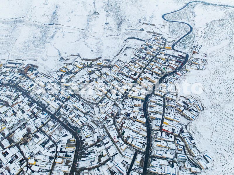 Caption:Snow dusts a mountainside village in Yushu Tibetan autonomous prefecture, Qinghai province, on April 24, 2024. Spring snow in many parts of the province since last week has had an impact on agricultural activities.