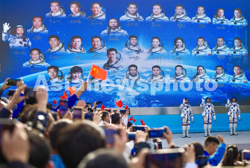 A see-off ceremony for three taikonauts of the Shenzhou-18 crewed space mission is held at the Jiuquan Satellite Launch Center in northwest China on April 25, 2024.
