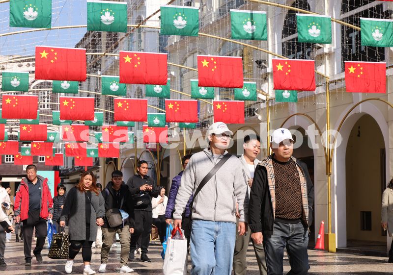 Caption:People visit a tourist attraction in Macao, south China, December 17, 2024. The streets of Macao have been adorned by festive decorations, as the city is set to mark the 25th anniversary of its return to the motherland.