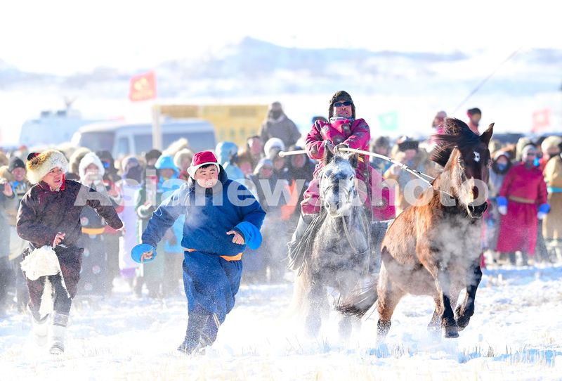 Herdsmen comepete during a horse race on snow in Xilingol, Inner Mongolia autonomous region, December 28, 2024.