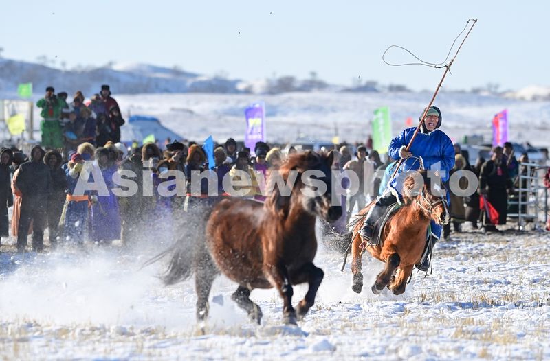 Herdsmen comepete during a horse race on snow in Xilingol, Inner Mongolia autonomous region, December 28, 2024.