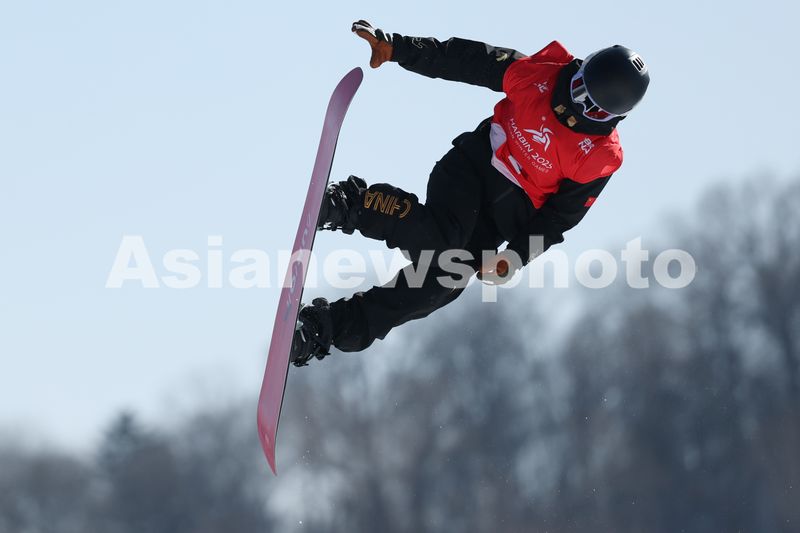 Xiong Shirui of China competes during the women's snowboard big air final match at the 9th Asian Winter Games in Yabuli, Northeast China's Heilongjiang province, Feb 10, 2025.