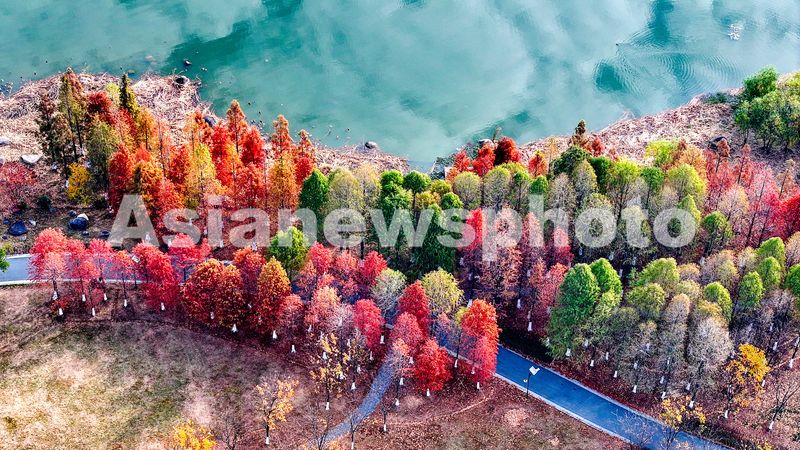 An aerial drone photo taken on December 16, 2025 shows the winter scenery of Xianghu Lake wetland park in Nanchang, Jiangxi province.