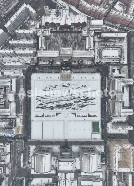 Caption:Over 1,200 students and teachers from Harbin Engineering University create a massive snow artwork depicting the CNS Fujian aircraft carrier on the university's playground in Heilongjiang province, December 28, 2025. The installation, spanning 230 meters in length and 112 meters in width, also features the KJ-600, J-35 and J-15 carrier-based aircraft.