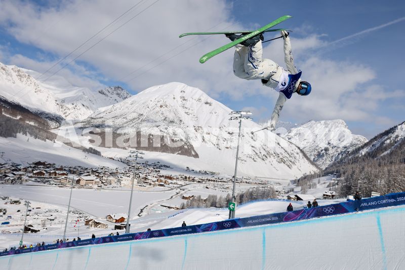 Caption:China's freeski superstar Gu Ailing competes during the women's halfpipe final at the Milano-Cortina 2026 Winter Olympics at the Livigno Snow Park in Italy on February 22, 2026.